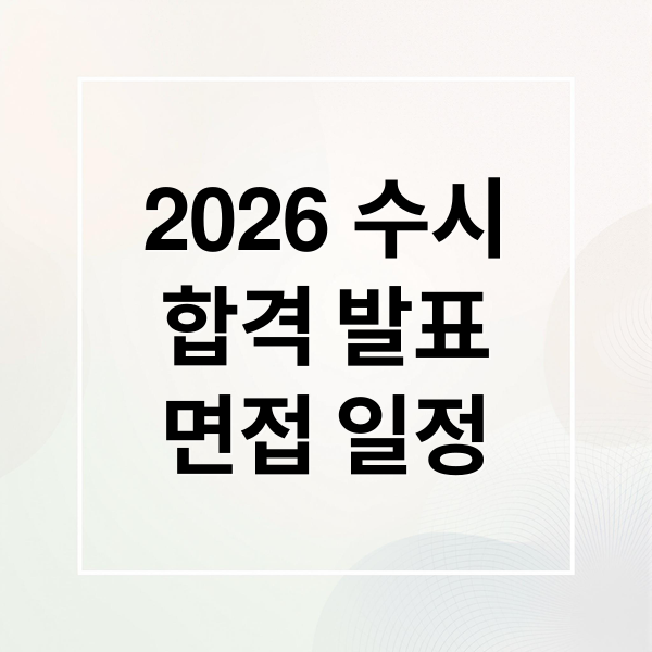 2026학년도 대학수시, 성공적인 입시를 위한 핵심 정보를 모두 모았습니다. 합격 발표일, 면접 일정, 효과적인 준비 전략까지, 2026 대학수시에서 최고의 결과를 얻을 수 있도록 꼼꼼히 확인하고 준비하세요!