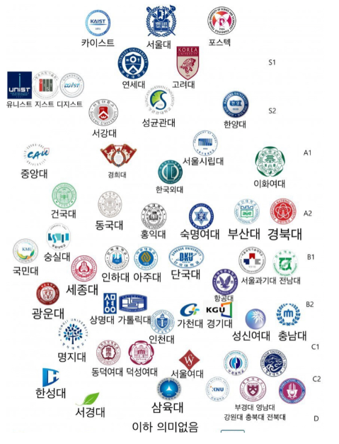 중위권 홍익대 > 아주대 ≥ 숭실대, 과학기술대 > 숙명여대, 국민대