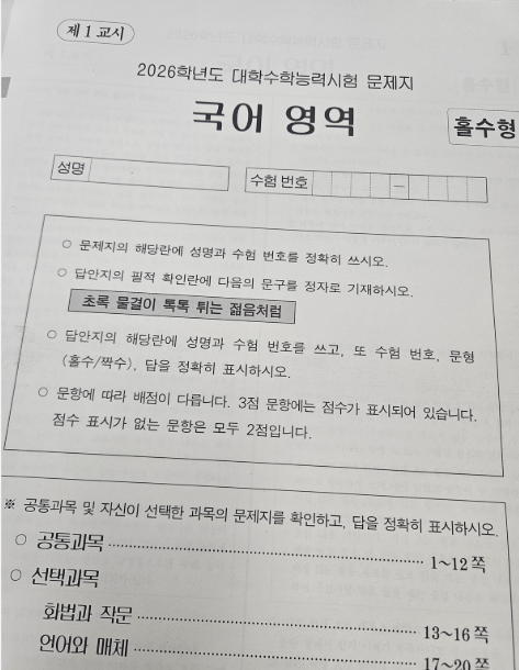 2026 수능 국어의 충격