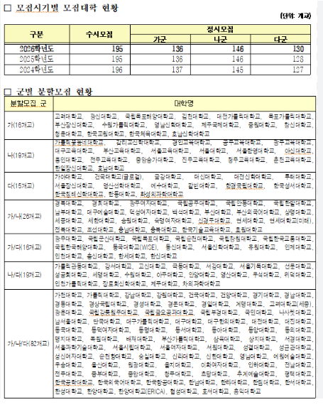 • 고려대 학부대학: 다군→가군 이동 (모집군 변경으로 경쟁률 변화 예상)
