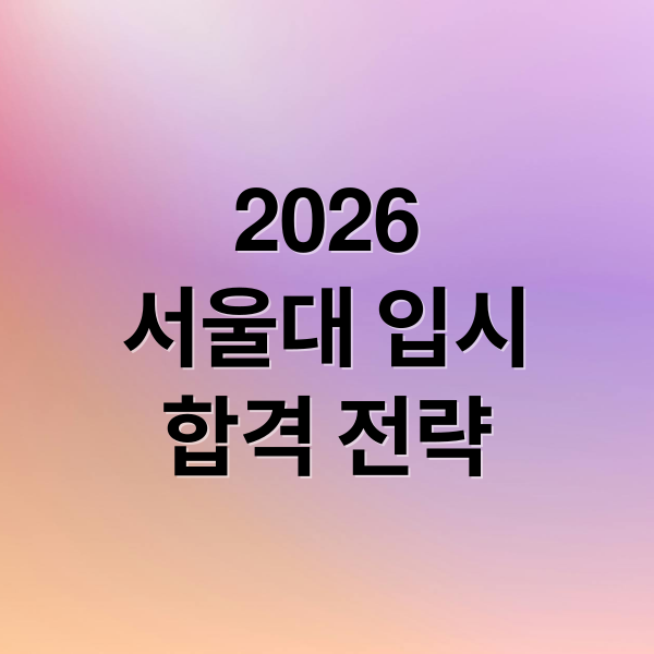 2026학년도 서울대 입시, 막막하게 느껴지시나요? 수시와 정시, 두 전형을 꼼꼼히 분석하고, 나만의 합격 전략을 세우는 것이 중요해요. 수능 난이도, 과목별 중요도, 탐구 영역 선택까지, 모든 변수를 고려한 맞춤 전략으로 서울대 합격의 꿈을 현실로 만들어 보세요! 지금부터 2026 서울대 입시의 모든 것을 파헤쳐 보겠습니다.