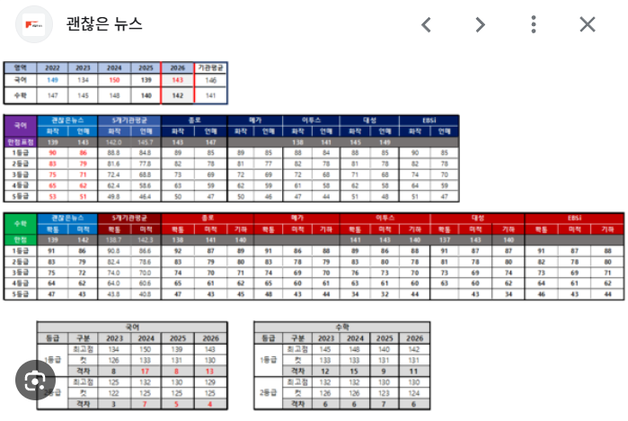 대학별 합격컷 확인