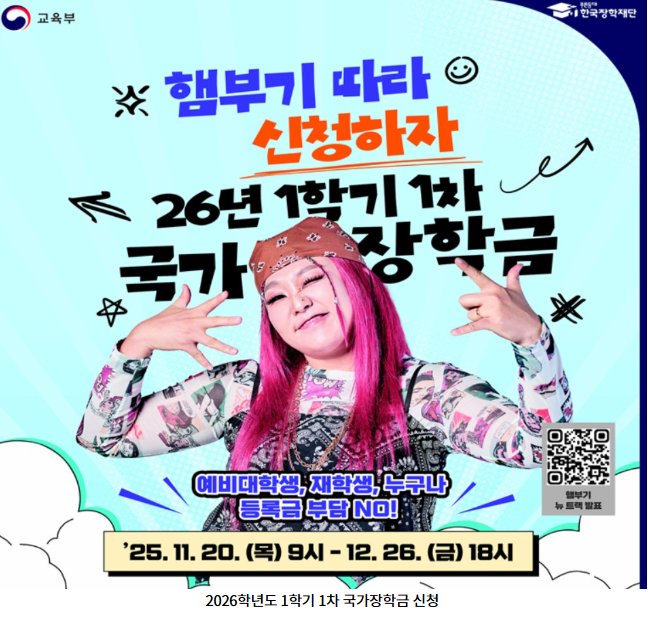 | 국가장학금 신청 | 2025.11.20(목) 9:00 ~ 12.26(금) 18:00 |