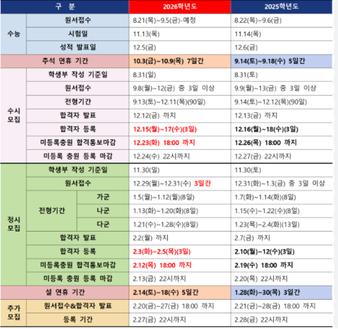 각 대학 입학처 홈페이지에서 최종 일정을 반드시 확인하세요!