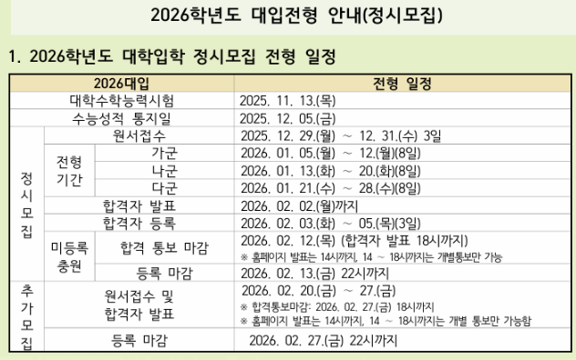 | 가군 전형 | 2026. 1. 5.(월) ~ 1. 12.(월) |