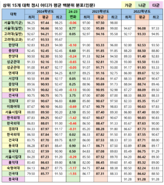 ‘등록생 기준’이라는 게 추가 합격 인원에 따라서 달라질 수 있다는 점도 잊지 마세요. 추가 합격이 많이 발생하면 등록생 기준 점수가 낮아질 수 있습니다. 총 합격생 기준으로 발표된 자료도 함께 참고해서 전체적인 그림을 그리는 게 중요합니다.