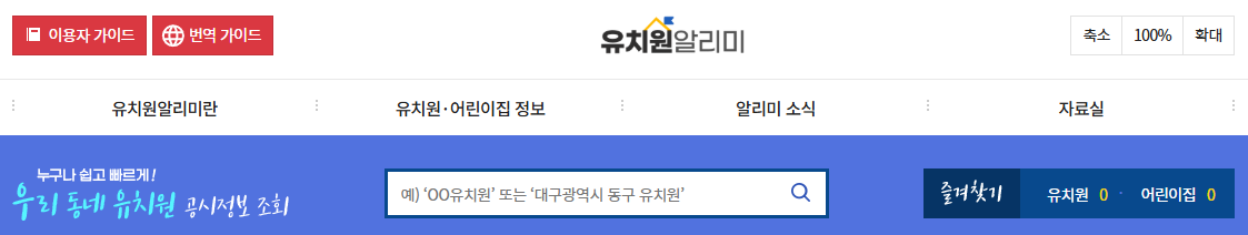 • 유치원 알리미: e-childschoolinfo.moe.go.kr