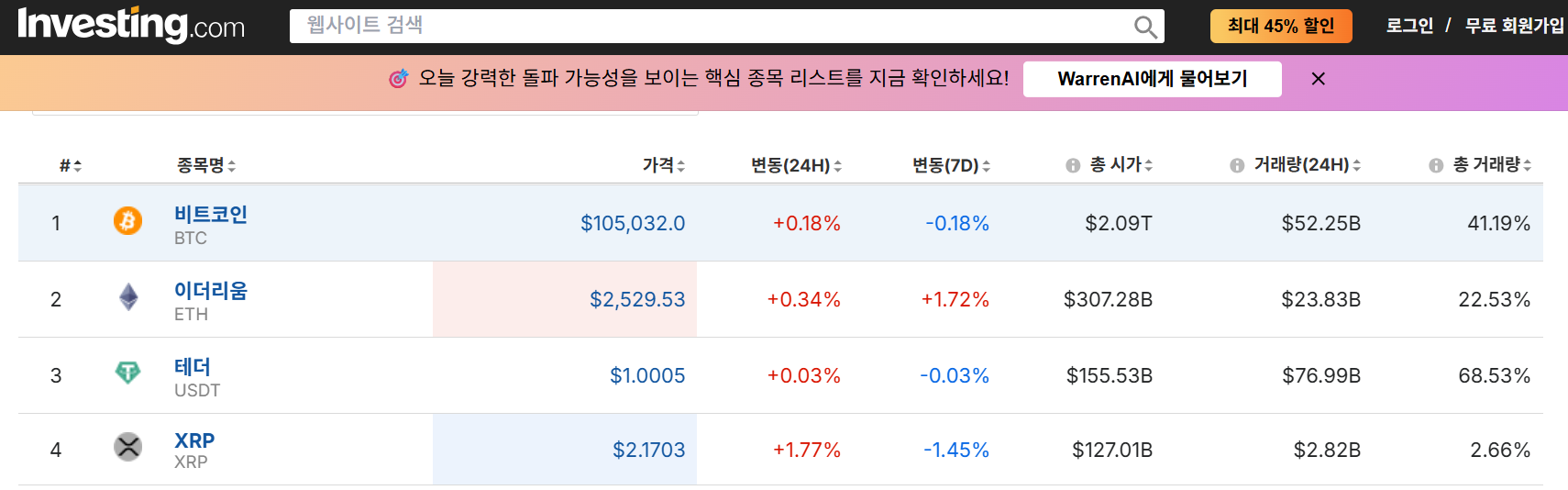 ♥ 비트코인을 포함한 다양한 암호화폐 가격, 차트, 시가총액, 거래량 제공