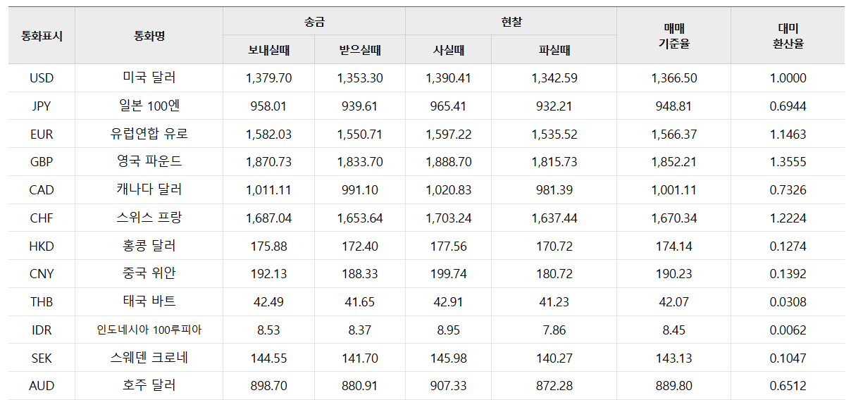 달러/원 환율은 1,365~1,380원 구간에서 움직일 것으로 전망되고 있습니다. 전문가들은 미국 연방준비제도의 통화정책 방향과 국내 경제 지표를 종합적으로 고려할 때, 달러 시세가 당분간 현재 수준을 유지할 가능성이 높다고 분석하고 있습니다.