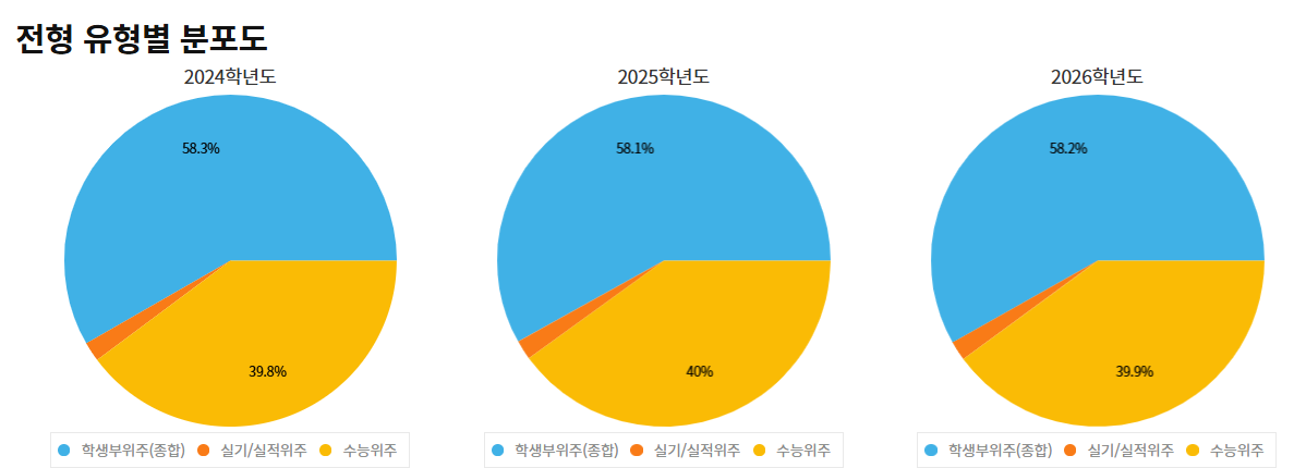 전형 구성은 2025학년도와 동일하나, 평가 기준과 반영 방식이 변화하면서 2026학년도만의 특별한 준비 전략이 필요합니다.