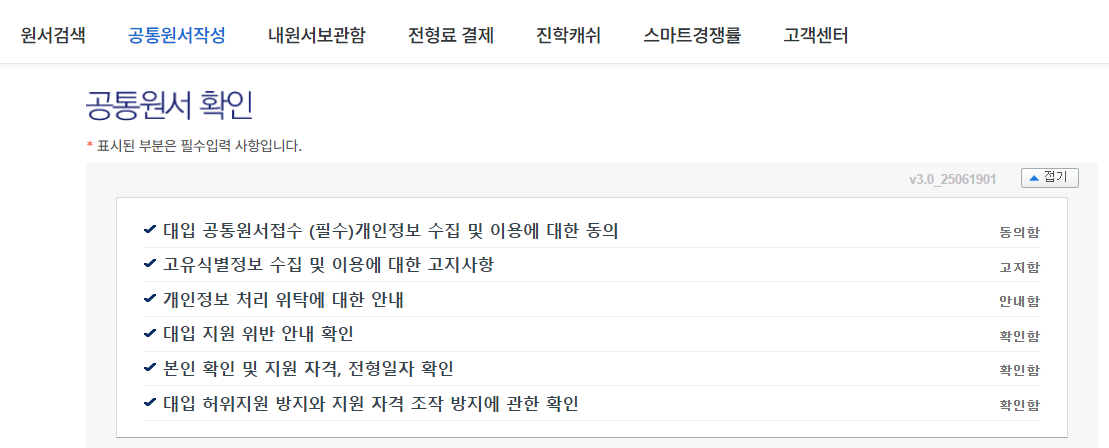 ▶ 접수 마감 시간 엄수: 대학별 마감 시간이 다르므로 마감 1~2시간 전에는 접수를 완료하는 것이 안전합니다.