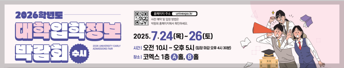 | 대학별 부스 상담 | 입학사정관과 1:1 맞춤 상담 (전형/전공/장학/복수전공 등) |