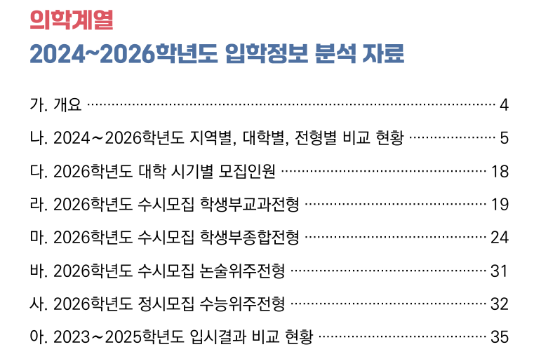 ♧ 2024년~2026년 의학 계열 입시 분석 ♧