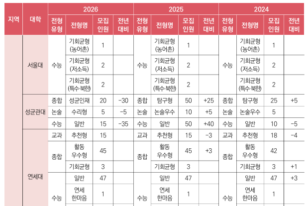 서울대, 연세대, 성균관대 등은 여전히 학종이 중심