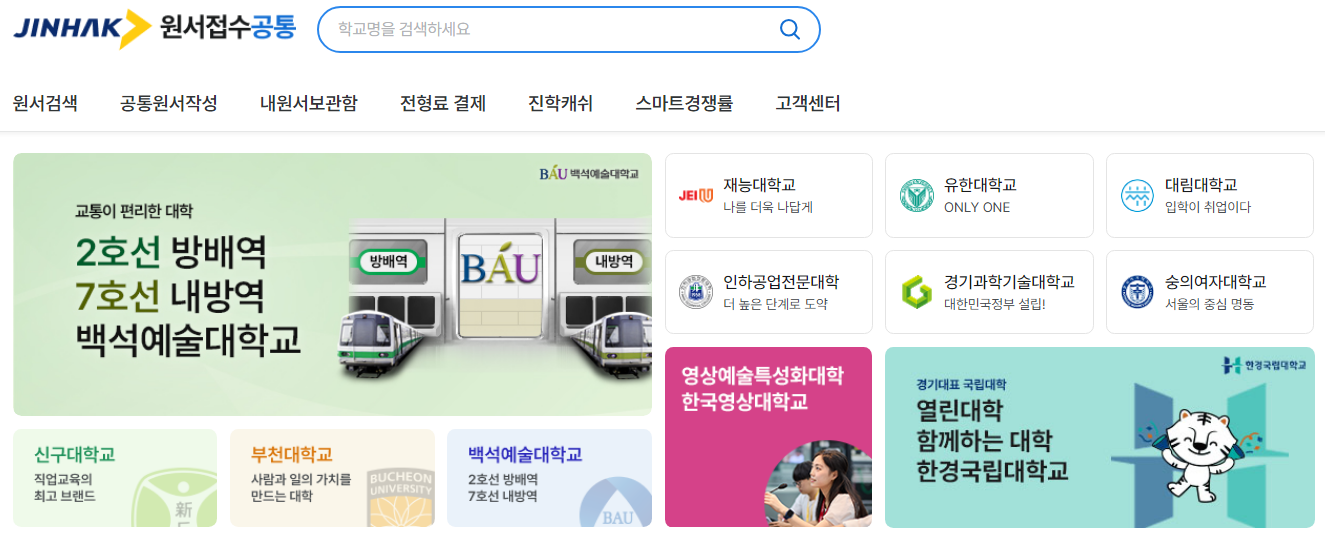 원서 넣을 대학이 어느 사이트에서 접수하는지 반드시 사전에 확인하세요.