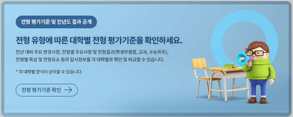 | 종합 전형 | 3.0 ~ 3.3 | 중앙대, 한양대, 경희대, 서울시립대, 성균관대, 건국대, 동국대, 홍익대, 부산대, 전남대, 국민대, 인하대 |